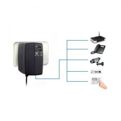 Lapara DC Mini UPS manufactured to supply power in direct current and protect against devices such as routers, modems, decoders, VOIP telephone systems, VOIP phone systems, surveillance systems, alarm systems, access control systems, etc...