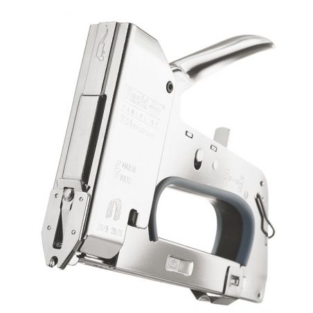Staple depth 9-11mm, 5 year warranty, made in Sweden. High durability nailer. Ideal for cable installation. Suitable for low voltage cables up to 50V. Suitable for cables up to 4.5mm in diameter: fiber, telephone, TV, alarm, speaker cables, etc.