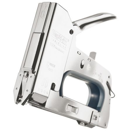 High durability stapler Ideal for cable installation. Suitable for low voltage cables up to 50V. Suitable for cables up to 6 mm in diameter: telephone, TV, alarm, speaker cables, etc. Staple depth from 10 to 14 mm, 5 years warranty, made in Sweden