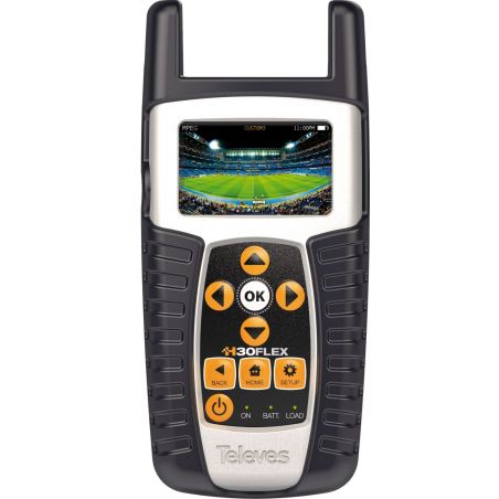 H30FLEX is a light-weight handheld meter packed with all of the features required to install and maintain TV systems using different modulation standards, like satellite (DVB-S/S2) or terrestrial/cable (analogue channels, DVB-T/T2 or DVB-C).