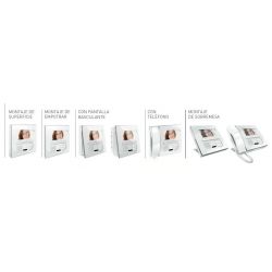 Indoor unit of hands-free color video of 2 THREADS, with inductive circuit. Prepared for different types of installations, depending on the accessories used: surface mounting, recessed mounting, desktop, telephone and inclined, both on the surface and in the wall. With 4.3-inch color LCD screen (16:9). 4 front push buttons. Dimensions: 171 x 171 mm.
