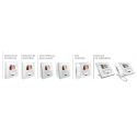 LEDs used for: call exclusion, door status and connection with external board. Possibility of adjusting the volume of the sound and the ringing tone (excluding call), as well as the screen color, brightness and contrast, by means of the corresponding rocker keys, after accessing the menu with the special keys.