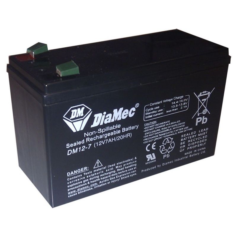 Rechargeable 12V 7Ah lead acid battery. Without maintenance. For use with safety equipment.
