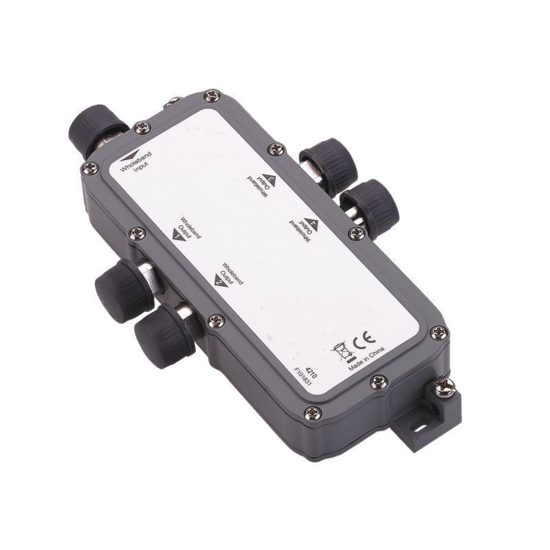 Active 4-way COAX splitter with N connector.