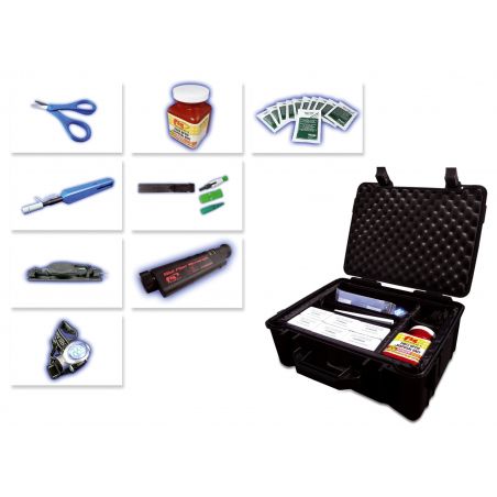 | INCLUDED ITEMS | - Kevlar scissors - Fibre disposal unit - Isopropyl alcohol cleaning wipes (x50) - Connector cleaner - SC/APC pre-polished connectors - Mechanical splicer - Mini Visual Laser Source - LED headlamp - Transport and storage suitcase |