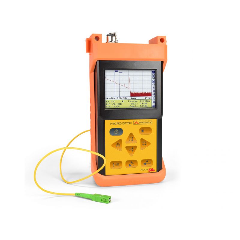 Promax PROLITE-50B portable single mode OTDR. Double window 1310/1550 0.3-240 km 28/28 dBs (SC/APC adapter included)