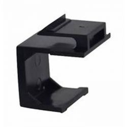 Blind cover in black color. It is used to close the excess gaps in the empty RJ45 patch panels with an anchor for Keystone connectors.