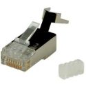 Connector RJ45 Category 7, FTP, shielded, with an insert, 8 contacts, gold plated, 3-point blade, both for braided and solid cable, shielded, RoHS compliant.
