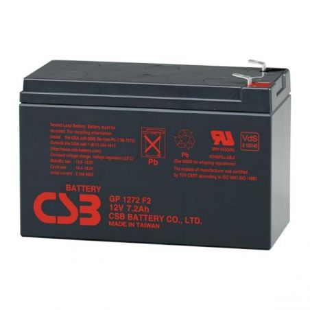 Repuesto de batería de 12V 7.2Ah para UPS o SAIS de Lapara capaz de aguantar hasta 5 años en espera (Standby) o mas de 260 ciclos de carga y descarga al 100%. Su composición interna es ácido y plomo y al ser baterías selladas son capaces de funcionar en cualquier posición sin riesgo de fugas.