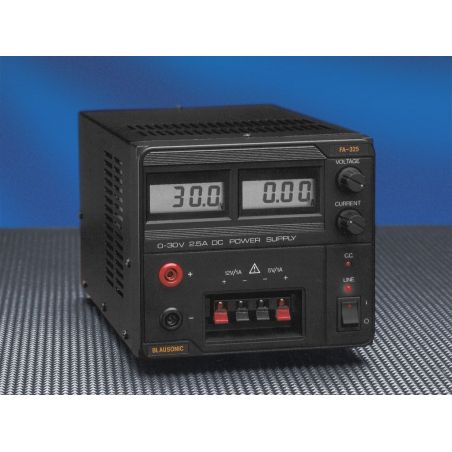 La fuente de alimentación BLAUSONIC FA-325 proporciona una tensión de salida variable entre 0V y 30V, con una corriente de hasta 2.5 A. Además de la salida variable, la FA-325 dispone de 2 salidas fijas (+5V y +12V) lo cual permite alimentar simultáneamente circuitos analógicos y digitales. Por su robusta construcción, protecciones integradas y aplicaciones multifuncionales es imprescindible para todo tipo de aplicaciones en electrónica.