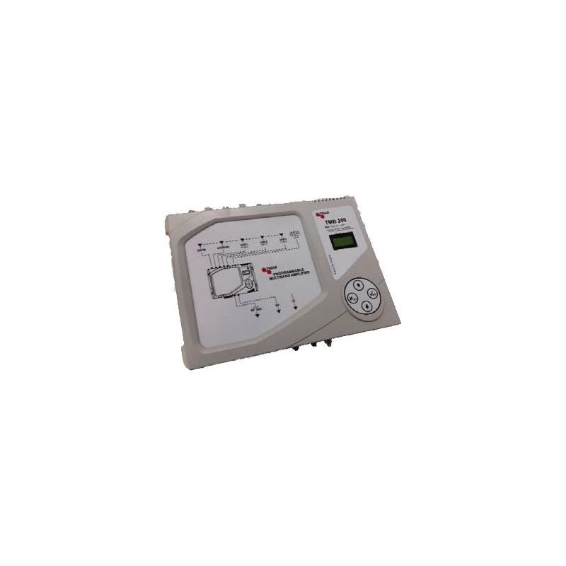 El amplificador TMB 300 permite recibir estas señales, para igualar sus niveles y amplificarlas. Puede ser utilizado como una unidad independiente, así como una parte de una estación de cabecera en donde es necesario una ampliación de canales o una modifi cación de frecuencias.