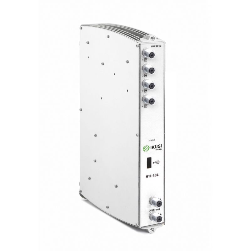 - El módulo HTI-404 es capaz de recibir 4 muxes DVB-T/T2, DVB-S/S2 o DVB-C y transmitirlos en 4 canales de salida DVB-T o DVB-C.