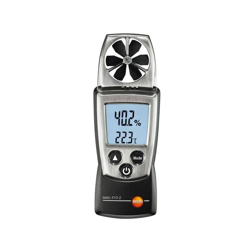 Ideal para las mediciones rápidas en rejillas (salida de aire) y para la supervisión de las condiciones ambiente - también en el exterior: con el anemómetro de molinete testo 410-2 medirá además la velocidad del aire, la temperatura y la humedad ambiente. Sea la temperatura de bulbo húmedo, el punto de rocío, la sensación térmica o la intensidad del viento en la escala de Beaufort: el anemómetro pone el cálculo de estos parámetros a su alcance tan solo pulsando un botón.