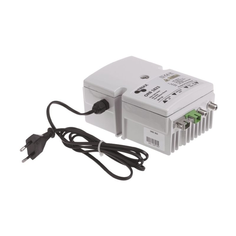 El Triax ORB 1823/1923 proporciona un diodo LED multicolor integrado para una fácil identificación del nivel de potencia de entrada. Tiene una entrada óptica de conector SC / APC y una salida de ruta de retorno, y una salida de RF y un punto de prueba a través de conectores F.
