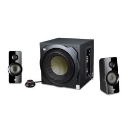 En la nueva gama de altavoces Big Bass de Woxter, no podía faltar este sistema de altavoces 2.1 ideal para utilizarlo con PC multimedia y equipos de sonido estéreo.