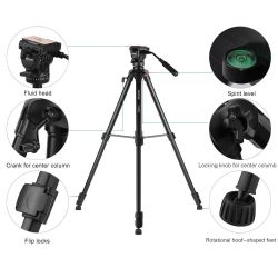Trípode de 4 secciones ajustable con cabezal basculante fluido para cámara Blackbody DAHUA-2182 (JQ-D70Z).