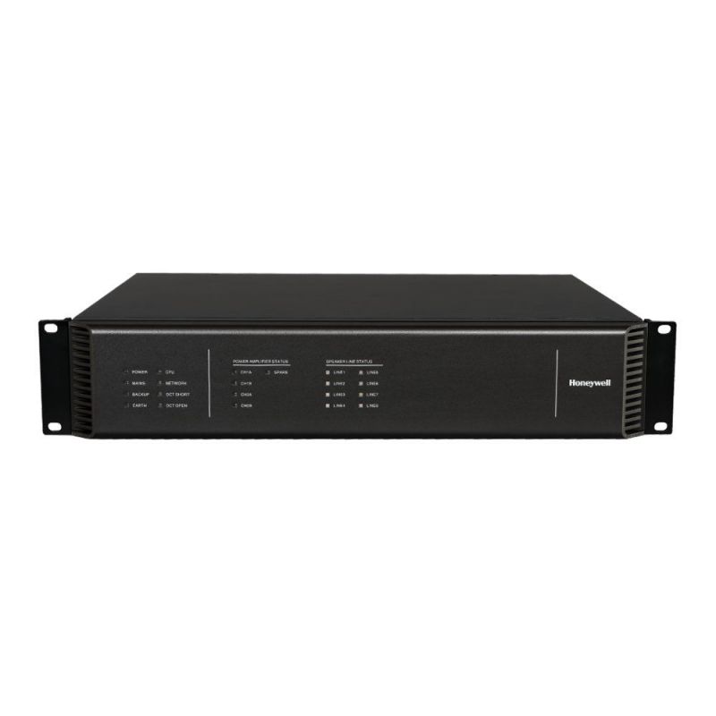 - Detección automática de averías: alimentación principal, alimentación de respaldo, CPU, amplificadores, líneas de altavoces, puesta a tierra de la línea, entradas de contacto seco y red.