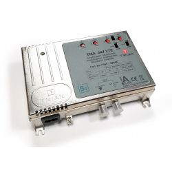 TMA 447 LTE 5G 700 Mhz. 1 entrée FM, 1 entrée DAB, 2 entrées UHF. Amplification FM: 30 dB - DAB: 35 dB - UHF: 35/45 dB (commutable). Niveau de sortie: 118 dBμV (IMA 60). Alimentation pour priors: 24 Vdc / 80 mA. (pour UHF 1).
