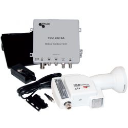 LNB avec sortie coaxiale type N 50 ohms. Facteur de bruit de 0,5 dB, amplification de 62 à 72 dB Triax. Alimenté par le TOU 232