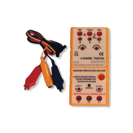 Le modèle AR-225 est composé de trois instruments en un et d'une grande fiabilité: indication de phase ouverte, séquence de phases et rotation du moteur. Les pinces crocodiles permettent une connexion facile aux bornes des plaques de commutation.