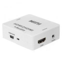 Get an audio output with a 3.5mm Jack connector from an HDMI cable. HDMI input, HDMI + Audio output.