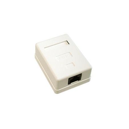 Rosette de surface de 1 RJ45 UTP Cat.5. Boîtier: UL ABS 94V-0, Ivoire ou Blanc. Blindage: boîtier métallique de 1,2 mm.
