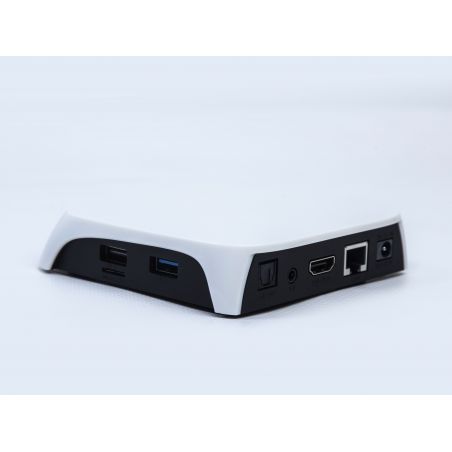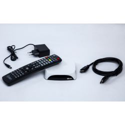 Sistema operacional Android 7.0 com aplicativos e navegador da web. 2GB DDR3 e 16GB Flash. WI-FI. USB 3.0, USB 2.0 e Micro SD. Ethernet 100M. S-PDIF e HDMI 2.0a CEC. 4K UHD HDR10 e HLG VP9 10 bits 60 FPS H.264 H.265. Dolby Digital Plus. Branco
