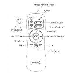 El mando a distancia Mygica KR53 con función Flymouse (mando+raton) usa un nuevo sistema wireless 2.4G con control total en 360 grados, similar al de la Wii, pero mucho mejor, hará que navegues por los distintos menús de forma rápida y precisa.