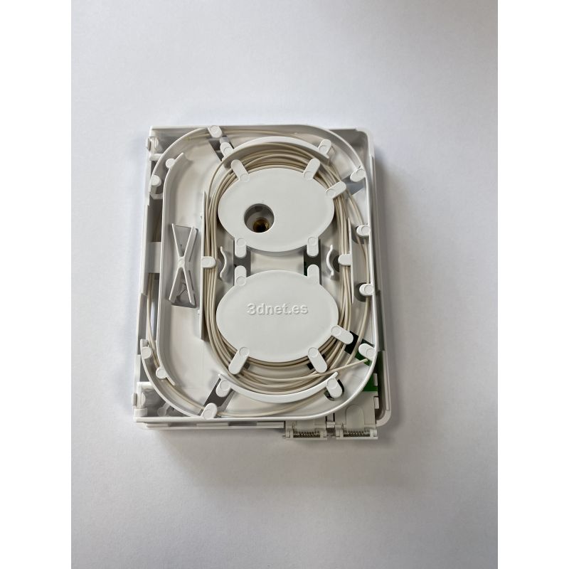 A roseta ENDBOX-FO da 3dnet.es foi projetada para atender a todos os requisitos de redes ópticas para residências ou empresas (FTTx). Foi projetado para a terminação de 2 fibras ópticas no interior de edifícios. Ele é fornecido com uma área para a disposição das fibras que garante que um raio mínimo de curvatura de 20 mm possa ser mantido em qualquer ponto da roseta.