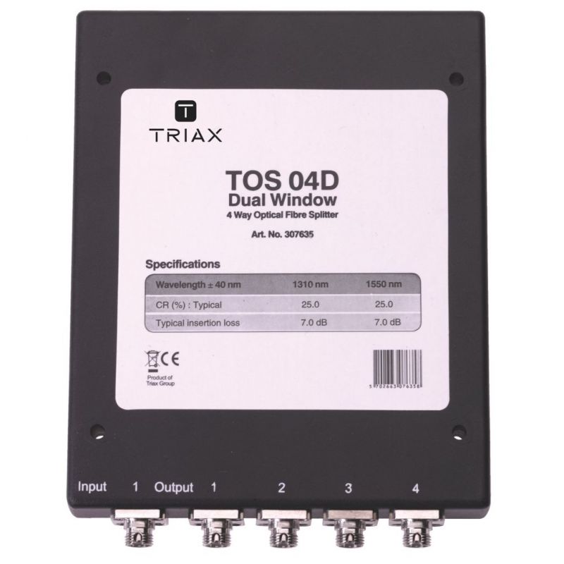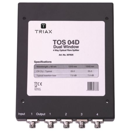 O TOS 4D é um distribuidor óptico passivo simétrico (25/25/25/25) de 4 direções e com FC / PC conecotrores que permite construir redes ópticas passivas (PON). Perdas de inserção: 7 dB