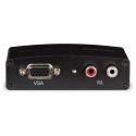 Permite a conexão de um PC a uma tela com entrada HDMI. Converte um sinal VGA e uma entrada de áudio estéreo em um sinal HDMI com resolução máxima 1280 x 1024 (SXGA).