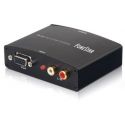 - Converte um sinal VGA e uma entrada de áudio estéreo em um sinal HDMI.