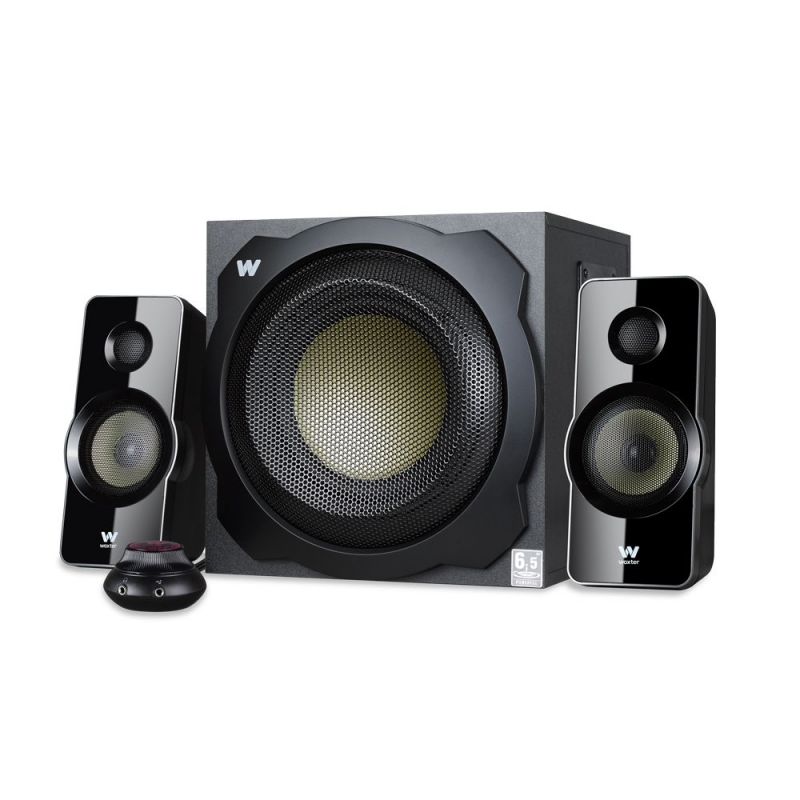 Na nova linha de alto-falantes Big Bass da Woxter, não faltam este sistema ideal de alto-falantes 2.1 para uso com PCs multimídia e sistemas estéreo.